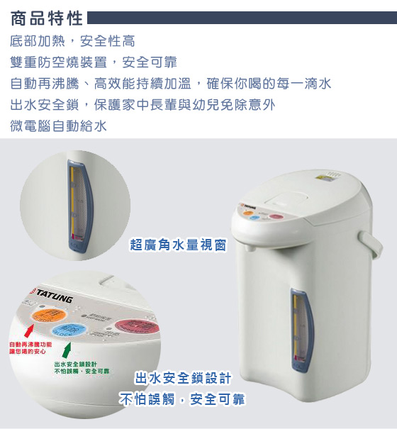 品名:【Tatung大同】4公升電熱水瓶(福利品)
